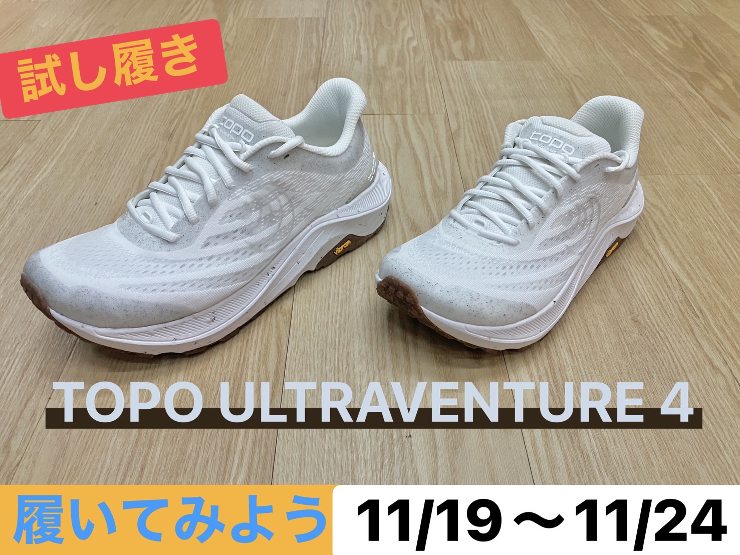 TOPO(トポ)、ULTRAVENTURE4(ウルトラベンチャー4)試し履きやってます!